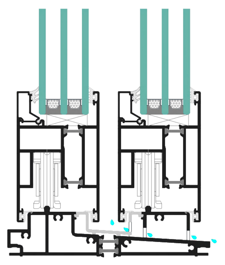 舒適性:提升推拉門采光性能好,密封效果極佳,安全防盜; 下軌道設計導水坡便于雨水排除; 室內裝修可以與下軌道平齊從而實現(xiàn)無障礙進入。