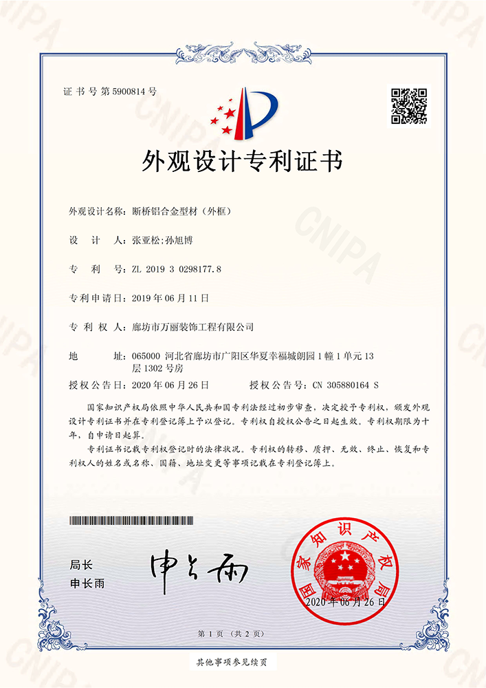 外觀設計專利證書