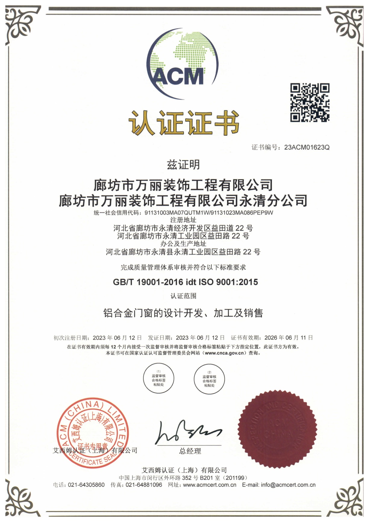 認證證書-質(zhì)量管理體系